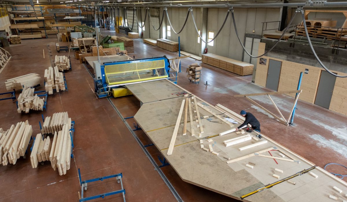 En 2024, notre atelier fermettes Espace Charpente a fabriqué plus de 1 500 m³ de charpentes industrielles !