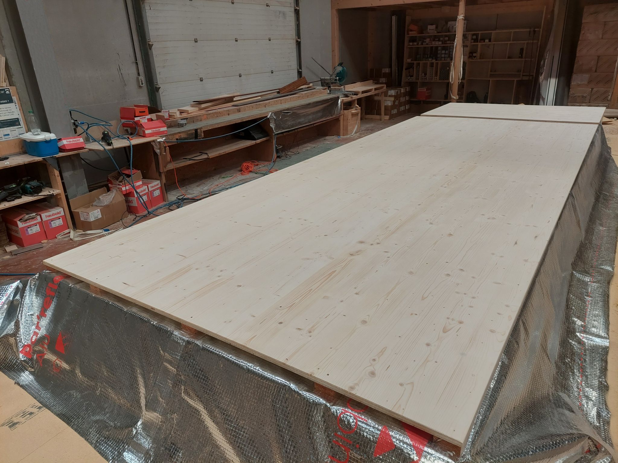 Chez Espace Charpente, on ne fait pas que de la charpente ! Nous fabriquons aussi des caissons de toiture, directement dans notre atelier.