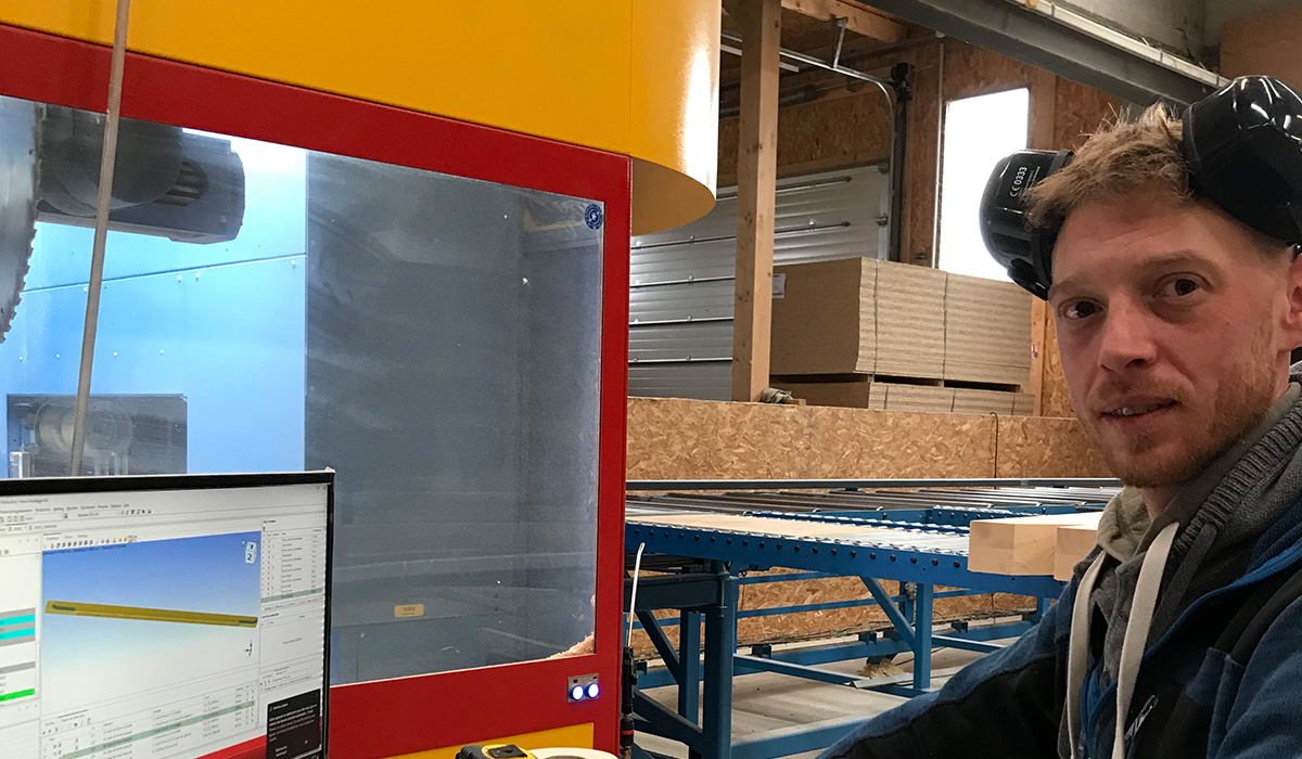 Depuis un an et demi, Ludovic supervise l’utilisation du Robot Drive, une machine de pointe capable de changer les outils automatiquement. Son rôle est essentiel, il pilote la machine, l’approvisionne en bois, contrôle la qualité des usinages, s’occupe des finitions et empaquète les pièces pour le transport.