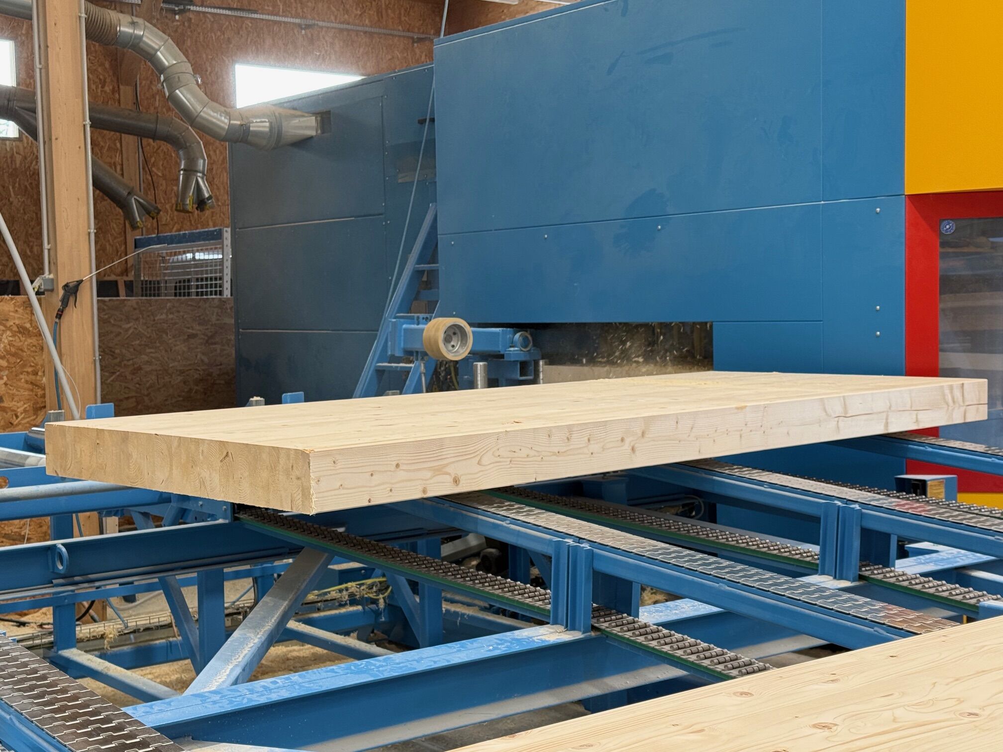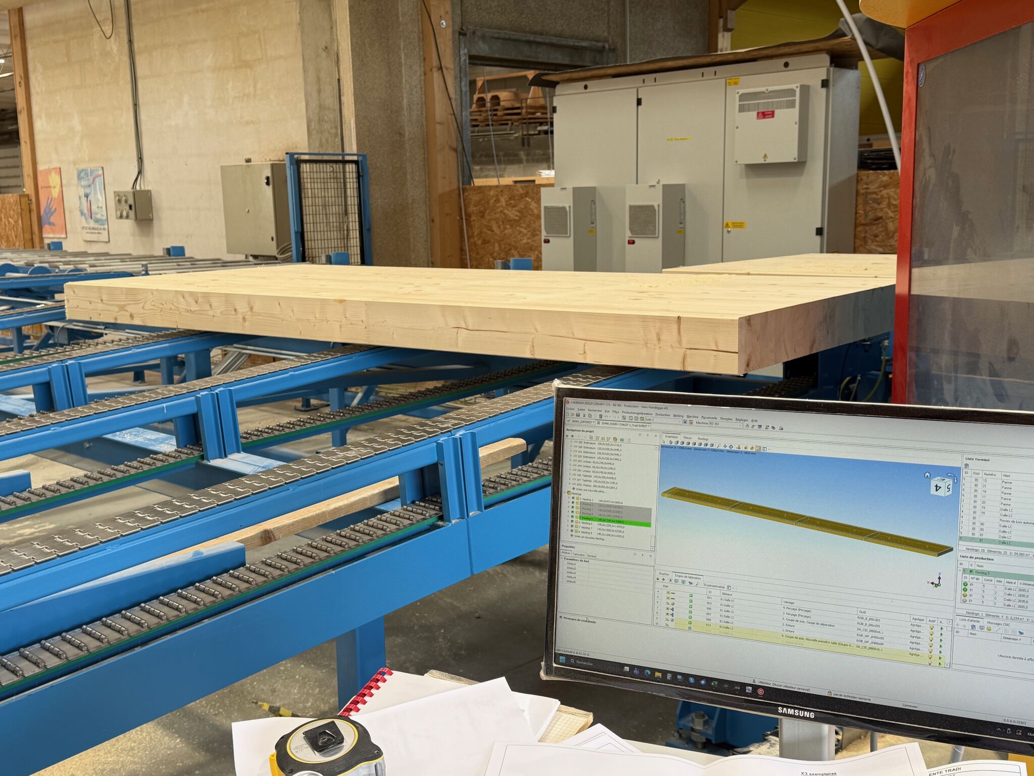 Du lamellé-collé de 1,20 m de largeur destiné à des créations de plancher. Ce type d’élément est un process particulier....
